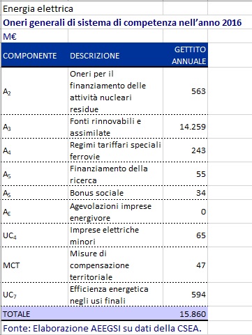 Sono gli importi fatturati per coprire i costi relativi ad attività di interesse generale per il sistema elettrico, e che vengono pagati da tutti i clienti finali del servizio elettrico. In particolare per: