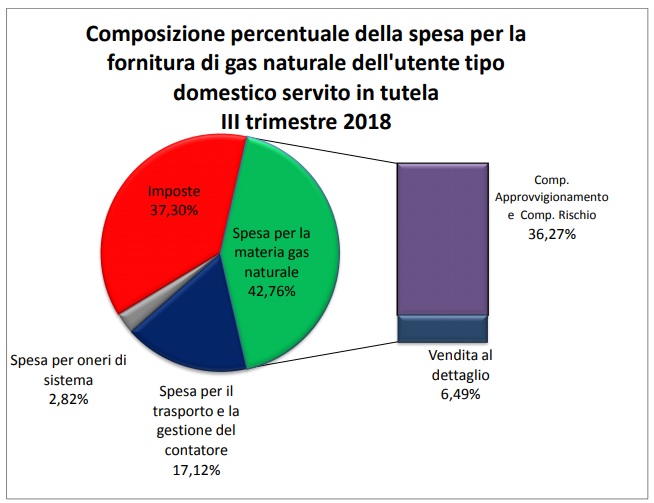 Il rapporto presenta anche la composizione della spesa per la fornitura di gas naturale dell’utente tipo domestico servito in tutela.