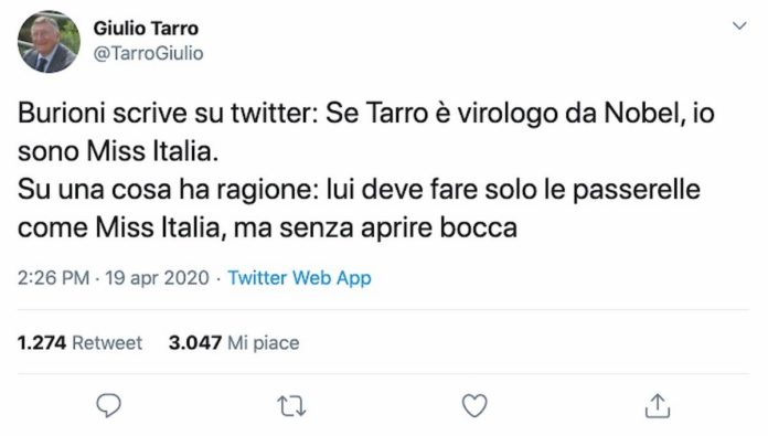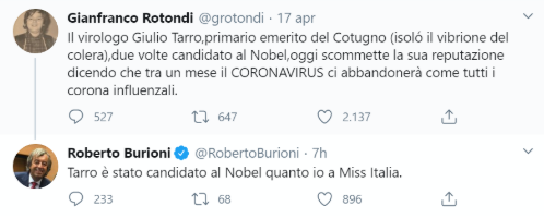 La disputa che lo ha visto coinvolto su Twitter contro il ‘pluricandidato al Nobel’ Giulio Tarro dimostra la ritrosia ad affrontare certi argomenti scabrosi, persino quando potrebbero volgersi a suo vantaggio contro il nemico di turno: