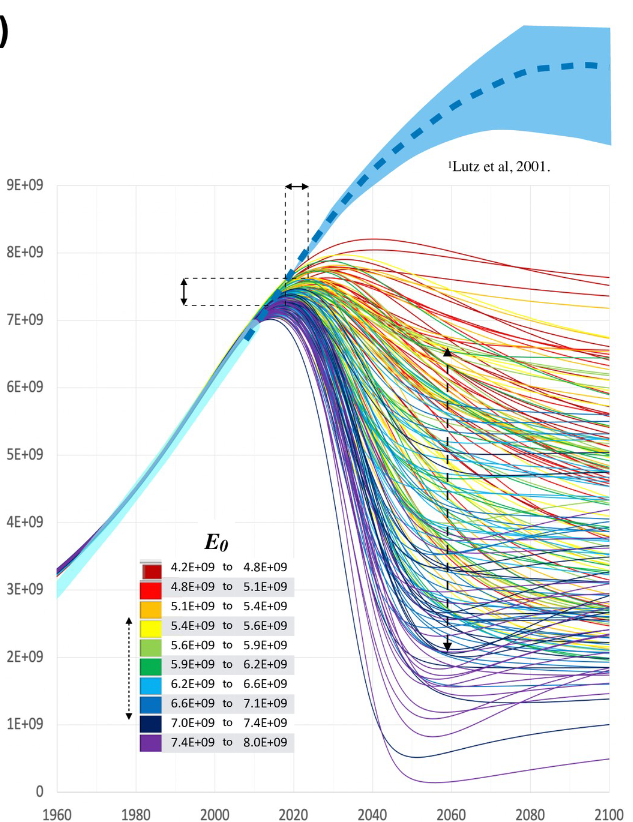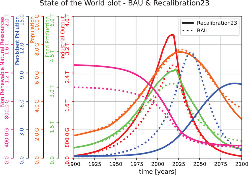 Ciò detto, è però vero che, alla prova dei fatti, alcuni modelli si sono dimostrati straordinariamente predittivi; anche più di quanto presumessero gli stessi autori.  Il più noto ed importante fra questi è il famigerato Word3 su cui torniamo perché uno dei suoi principali difetti è proprio l’incorporare fra i suoi algoritmi la citata “teoria della transizione demografica”. Una scelta perfettamente legittima nei primi anni ’70 e priva di effetti sensibili sulla parte ascendente delle curve. Nella parte “pre-picco” per intendersi. Non lo è però più sulla base delle conoscenze attuali e la sua sostituzione con qualcosa di più realistico cambia drasticamente la nostra prospettiva sulla fase “post-picco”.