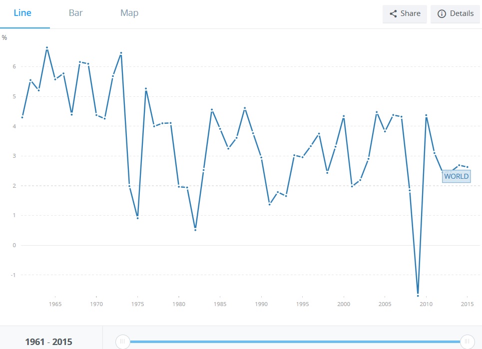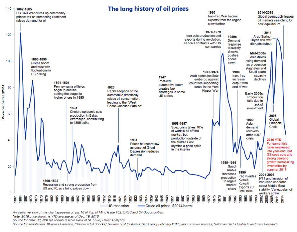 Ragionando in astratto ignorando i limiti fisici del pianeta, tutto si limiterebbe alla fortuna di nascere nel momento giusto per godersi appieno la fase ascendente di ciascuna ondata. Analizzando però le fluttuazioni del prezzo del petrolio negli ultimi cinquant’anni in rapporto ai tassi di crescita del PIL, si scopre una realtà meno edulcorata:
