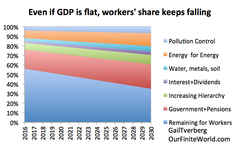 In realtà, questo scenario immagina che il tracollo (dovuto all’azione sinergica delle diverse variabili) si scateni principalmente sotto forma di crisi alimentare, in maniera analoga a quanto sostenuto da Ehrlich e altri negli anni Settanta. Tuttavia, benché l’impennata del petrolio tra il 2005 e il 2010 si fosse ripercossa anche sui costi dell’agricoltura, con gravi conseguenze sull’accesso al cibo, l’emergenza è poi rientrata una volta crollato il prezzo del greggio.