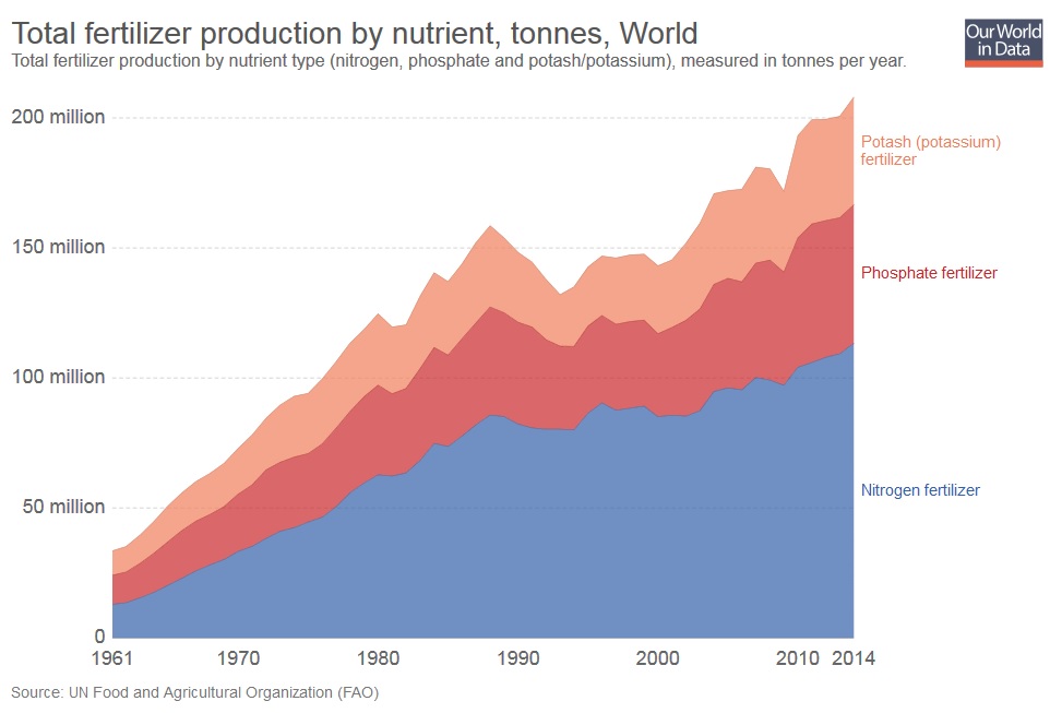 Tutti i nodi verranno definitivamente al pettine quando il collasso assumerà le sembianze dello spettro agitato negli anni Settanta, ossia di crisi alimentare. La ragione per cui è stata evitata per tanto tempo, creando addirittura abbondante sovraproduzione, è molto semplice: l’uso di fertilizzanti di sintesi.