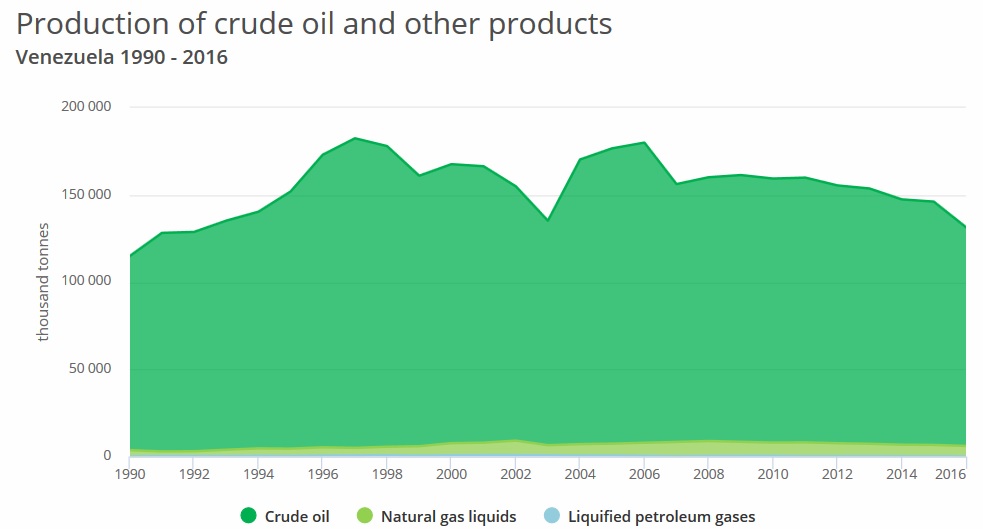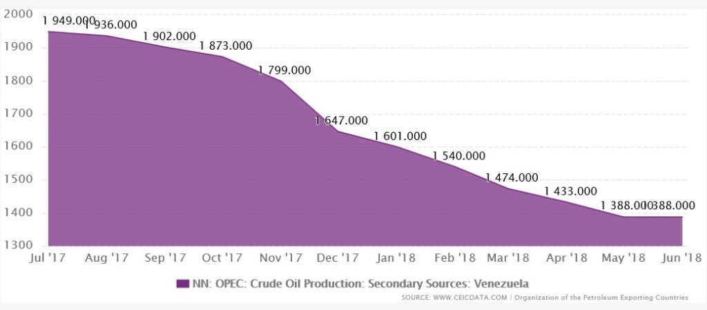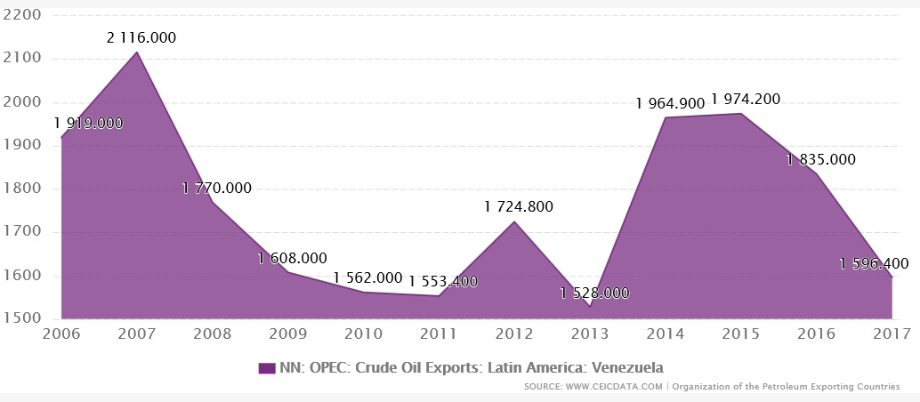 • il crollo delle quotazioni cominciato dal 2014 ha invece inferto un colpo mortale all’economia venezuelana, a cui ha fatto seguito una spirale inflattiva innescatasi nel tentativo di tamponare il drastico calo di introiti. Tutto ciò ha provocato conseguenze gravissime a livello sociale, come un repentino aumento del tasso di denutriti.