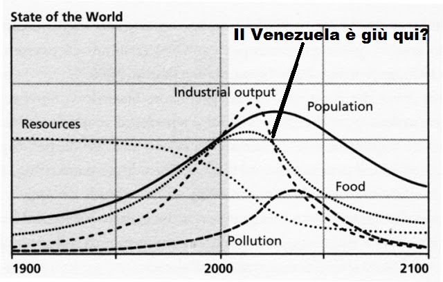 *Senza appensantire ulteriormente l’articolo con ulteriori dati, consultando fonti attendibili del Web (IEA, FAO, ecc.) è possibile constatare come in Venezuela siano sensibilmente declinati negli ultimi anni i valori pro capite relativi a consumo energetico e produzione agricola, in perfetto accordo con le analisi de I limiti dello sviluppo.