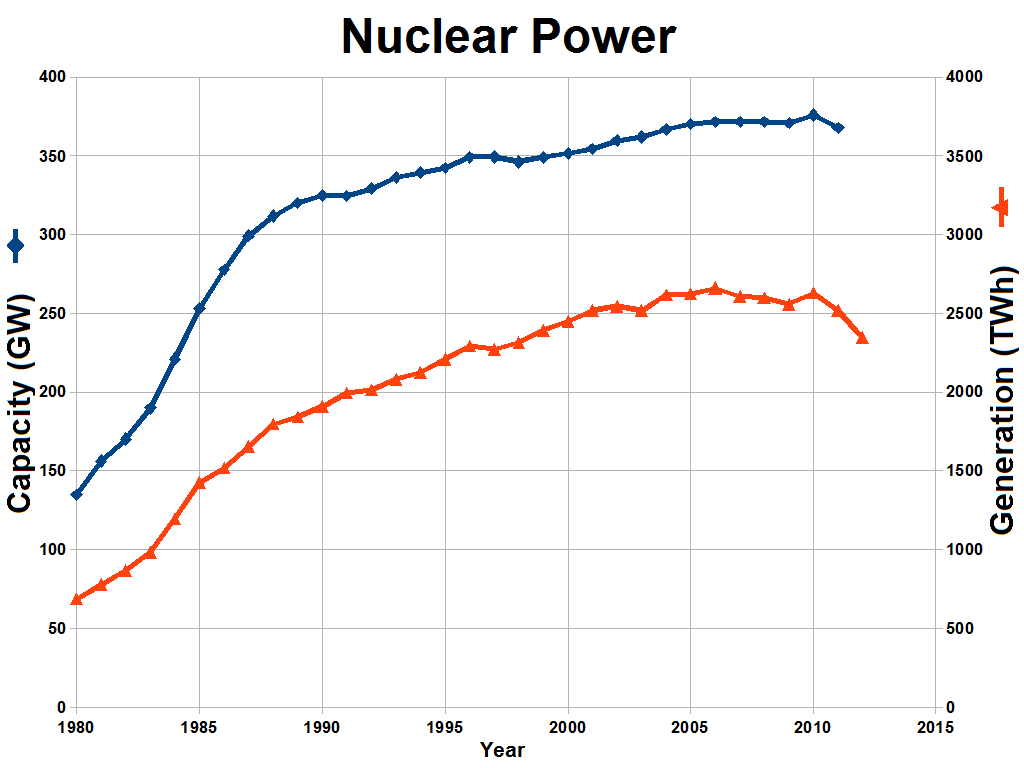 La storia ha seguito un corso molto diverso: lo sviluppo atomico ha rallentato bruscamente la sua corsa a partire dagli anni Ottanta e gli scenari futuri più credibili attribuiscono al nucleare una quota minoritaria della produzione di energia primaria; dulcis in fundo, la ‘riscossa dei negletti’ è stata molto limitata e, quando avvenuta (Cina e India in primis), non è stato certo per opera del giovane virgulto atomico bensì dell’anziano carbone, che ha conosciuto un’inaspettata seconda giovinezza.